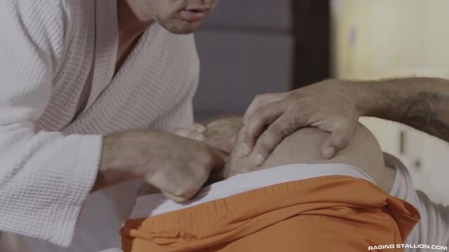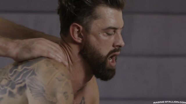 Hell-bent on staying in Pierce Paris's good graces -- particularly following the incident between Beau Butler and Pierce's rap star pal -- Warden Cole Connor sends recently fucked inmate Alpha Wolfe to the business mogul's palatial home. Ready to release the week's stress, Pierce pushes Alpha onto his hands and knees, commanding him to spread his satisfying hole. Wielding his power, the mega-rich businessman sniffs and fingers Alpha's fuzzy fuck-slit before pushing his eager tongue in for a taste. But, if he's to truly prepare Alpha for his oversized cock, he'll need to stretch the jailbird's hole to the extreme. Pierce pounds the prisoner with two large man-ramming dildos before feeding Alpha his gargantuan cock and low-hanging nut sack. Pierce then grabs a stiff-dicked Alpha by his ankles, spinning the inked convict onto his back and spreading his legs wide open. From above, Pierce plunges his hard-on in and out of Alpha's cavernous gape. Alpha's rock-solid dick bounces against his thick bush as the billionaire smacks his furry ass and fucks him bareback on all-fours. Just when Alpha thinks his hole has been totally wrecked, Pierce throws him on his back and goes back in, balls-deep. The inmate, submitting fully to pleasure, shoots gobs of pearly-white cum onto his hairy chest. As Pierce pulls out of Alpha's worked-over ass, he squirts a hot load of cum onto the prisoner's tongue before putting his asshole-flavored dick back in Alpha's mouth. Is Pierce satisfied with The Warden's 'gift' enough to forgive Cole, or will there be hell to pay?