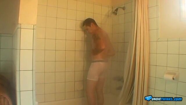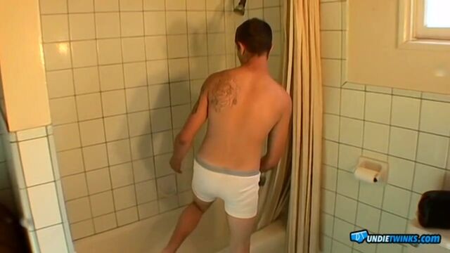 Skater cutie Grant strips down to his white boxerbriefs and takes a shower, AMAZING cum shot through his undies! Sorry about the audio, I accidentally turned the mic off but this video was too hot not to put up, enjoy!!
