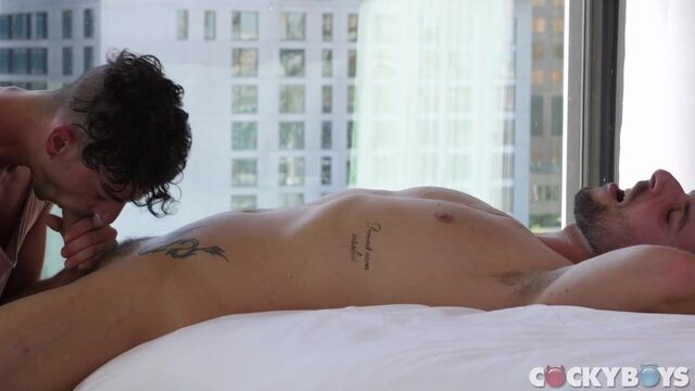 Cory Kane hooks up with Freddie Daze, another hot fellow Canadian in his CockyBoys debut! The guys chatted on social media and were excited to get together for thir condom-free scene...which is obvious from Freddie's big boner as they make out. Cory eagerly pulls off Freddie's gym shorts and sucks him, compelled to also use BOTH hands to take care of his super-thick cock. As a result Freddie is in a state of prolonged pleasure.