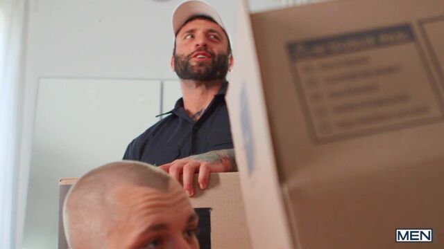 When Theo Brady's boyfriend heads upstairs, Theo decides it's time to take a little break from the unpacking... only to get caught with his dick in his hand when their buddy, Markus Kage, arrives to help out. Theo helps Markus's cock out of his pants, deepthroating him and hiding behind a stack of boxes when his man comes in to say hello. Markus fucks Theo's hole doggystyle, pounding him up against the window where the new neighbors can get an eyeful of the twink's slender body. When Theo's boyfriend catches them fucking he wants to get some of Markus's dick too, but they make the cuck watch as Markus fucks Theo, then they give him a double cuck facial!