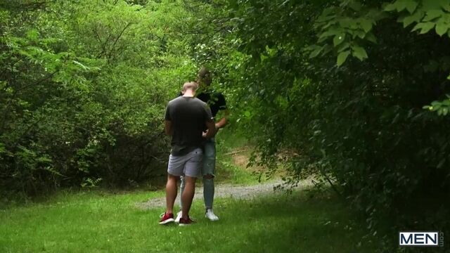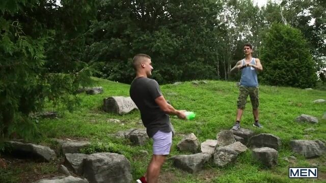 Dark-headed Pierre Fitch is filming good-looking Jake Porter while he pranks people by pretending he’s jerking off. Tattooed cutie Theo Ross was actually fooled, and whipped out his thick cock right there in the park! Chiseled Jake brings athletic Theo back home for some fun, and invites his cameraman, slender Pierre to put down the camera and join in with his delicious meaty dick.