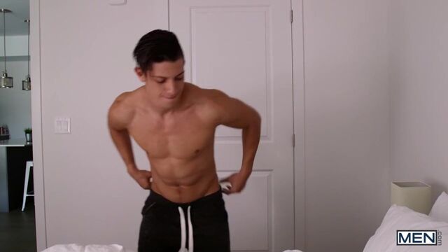 Tattooed cutie Theo Ross is caught watching dark-haired Danny Montero tasting his own cum after masturbating. Muscular Danny insists he should try tasting his own cum, and so chiseled Theo pulls out his ass masturbator and gives it a go. Hazel-eyed Theo still can’t bring himself to taste it and heads off to clean up. Meanwhile, Danny sneaks into his bedroom, hides under the covers and swaps the fake ass for his own!