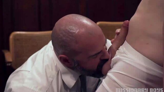 Curly-haired Elder Packer is a bright-eyed bushy-tailed boy with the face and temperament of an angel. He has no idea whathe has in store for him as he makes his way through the ceremonial steps required to join The Order. Nonetheless, he is excited to move forward in his mission. While he may not know exactly what The Order is, he does know that he feels an incredible sense of purpose and direction in his life now that he has started his journey. That is already more than he could have ever asked for, and he is willing to give up everything to sustain that feeling.Bishop Angus can sense this eagerness in the boy right away and knows exactly how to adapt to the situation. In Packer’s case, Angus must put up a colder front than he normally would. By doing so, he hopes to temper the boy’s expectations and let him know that his journey towards the higher ranks of The Order will not be an easy one.This is not a stroll in the park, nor is it a rip-roaring adventure. It is a test of discipline, focus, and servitude, and no boy, no matter how innocent or pure, will be spared the trials required by the priesthood.Though is already sure of the answer, Angus asks the boy if he knows what The Order is. Packer responds truthfully - he has no idea. He has heard rumors, whispers here and there in the halls of the mission, but he has never had anything confirmed. Angus takes his word and instructs him that while he may have no knowledge of the secret organization he has been chosen as a candidate to join, he must do all that the man says in order to continue on in his mission. Packer can tell that Angus is an honest, caring man, and is willing to follow him anywhere.Angus has the boy stand at attention to present his nubile body. He runs his hands up and down Packer’s torso, feeling the hard muscle underneath his dress shirt. The boy may have an angelic demeanor, but his body is incredibly alluring. This combination makes him the perfect candidate for service to The Order. Angus feels his appetite grow as he inspects he works his way down towards the boy’s cock. Finally, he grips it firmly and lets it grow beneath his fingertips.He takes the boy’s erect penis out of his slacks and puts it in his mouth, offering a warm, wet blowjob to the young missionary. Packer takes it gingerly, shocked that Angus would kneel down to please his prick. But as the man sucks, all presumption falls away. Packer climbs on the desk and perks his ass for Angus to probe. The Bishop sticks his dick deep inside the tight hole and reams the boy hard, filling his butt with passion and pleasure. Packer loves every moment, especially when Angus unloads his creamy sperm all over his back.