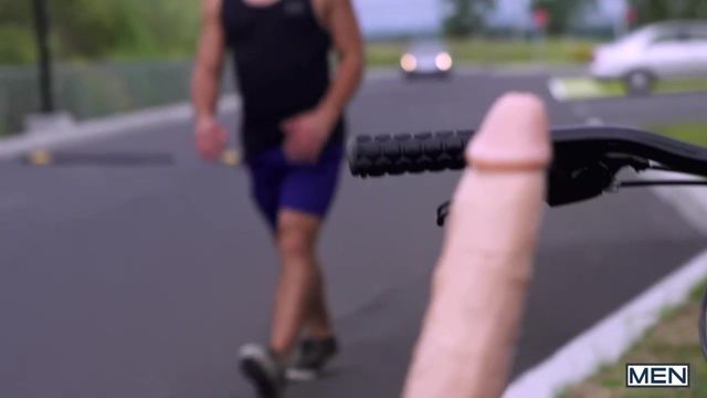 Boyish Collin Lust is on a roll pranking unsuspecting bystanders, while riding his perfectly positioned dildo on a bike! A cleverly cut hole in his shorts facilitates the action as stunned onlookers watch him go by. Muscular Logan Styles is stunned and turned on at the same time. Athletic Collin is positive the horny hunk and his big dick can do a much better job than the dildo. He invites him over for a private one-on-one where things get even hotter.