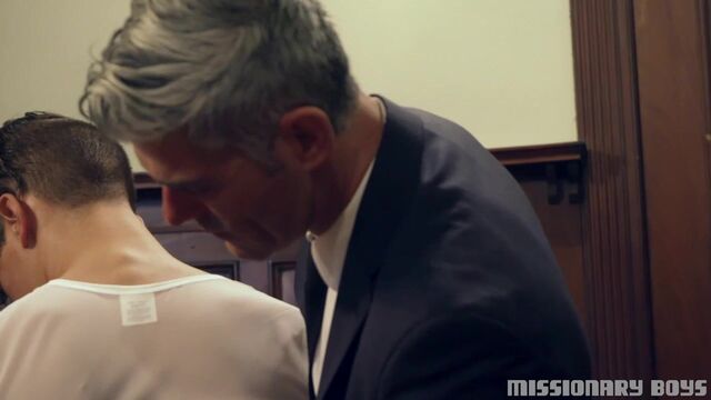 Some may consider Elder Brier a rebel without a cause - but President Oaks sees right through his facade. There is somethingdeeper stirring in the young boy, something that creates the need to act out and make sure he is noticed as an individual. It is not a simple case of narcissism. In fact, President Oaks can tell that Brier does not really enjoy being the center of attention. It is just something he has had to come to terms with because of how handsome he has always been; attention is something he cannot avoid. But regardless of what makes Brier act so rebelliously, Oaks is determined to tease it out of his psyche before letting him join the ranks of The Order.Today, Brier has been called into Oaks’s office for The Calling. As he probes the boy to get a sense of his mental state, Oaks wears a firm, even aggressive affect. Brier is surprised, as Oaks is generally known to be a man of calm collection, even detachment. Seeing the gorgeous priest in such a fierce state makes Brier’s loins quiver in anticipation.What will the salt and pepper man have him do. Will he discipline him in the way Brier has dreamt of for so long?Oaks tells the boy directly that he does not approve of the way he wears his hair. Brier has been warned several times that this informal presentation could be perceived as a mark of disrespect amongst the priest. But Brier refuses to heed these reprimands. If there is anything he can do to provoke the men to punish him, he will try it. He desperately needs their guidance and is willing to go as far as he needs to in order to get their attention.After being asked about The Order, Brier claims he has never heard of such an organization. In response, Oaks instructs him to bow his head and nod. He is only to follow instructions and follow them closely for the rest of The Calling. Any disobedience will be interpreted as a personal slight against the venerable priest and the men of The Order. Brier eagerly obeys but makes sure not to show how much he is enjoying himself. There would be nothing worse than to reveal his inner desires as that would only serve to nullify the authenticity of his punishment.As Brier steps up to Oaks, the man instructs him to get on hands and knees on his desk. Brier does so, presenting his body for the priest to inspect. Oaks runs his hands over the dashing boy’s body, feeling his taut flesh while creeping towards his tight hole with his fingers. He feels the boy’s rim before making him kneel down to take his cock in his mouth. Then, he slides his swollen erection into the rebellious missionary’s boy hole, fucking him hard to ensure that he respects the power of The Order. And as Oaks drenches the boy’s stomach in hot cum, Brier feels a sense of submissive satisfaction he has never experienced before.