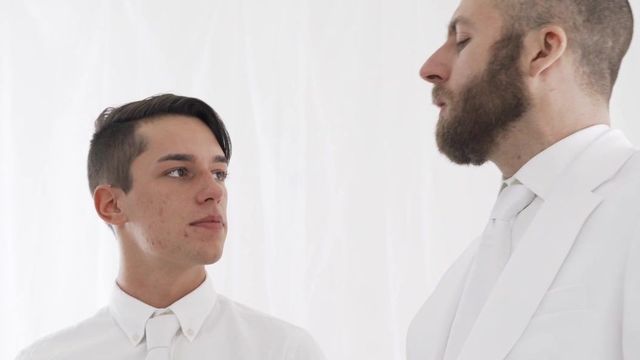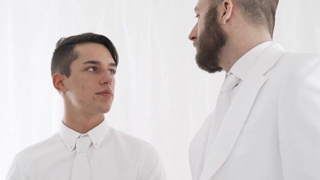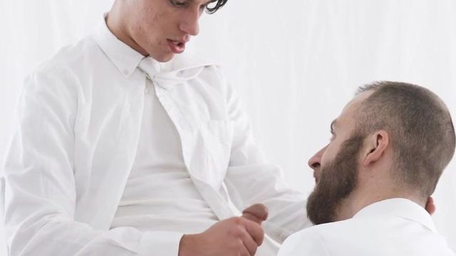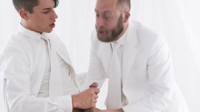 Elder Brier is relatively new to his mission, and he is still learning the ropes. But as he has spent more and more time underthe guidance and care of the men of the Order, President Lewis has repeatedly made himself an approachable figure to the young boy. That is why Brier is so surprised when he finally shares his first private meeting with the boy. Instead of the kind, welcoming Lewis he has become accustomed to, he finds a hard, stern man who seems highly concerned with Brier’s state of purity.Lewis asks over and over whether the boy understands the Law of Chastity, its significance, and what it entails. And while Brier knows that these questions must be coming from a place of suspicion, he has no idea what to do but lie. Yes, he has kept himself pure. But as these fraudulent words leave his lips, Lewis senses the deceit immediately. In fact, before Brier even opens his mouth, he knows the boy will lie – and it is precisely because of how open the two have been with each other previous to this Interview.Lewis has observed the boy from day one and understands the way he thinks. Brier finds himself fearful of this intimate knowledge.Soon, Lewis declares that he must perform a test to verify whether Brier is revealing the full truth about his purity. He makes the boy lift his shirt and then stuffs the boy’s tie into his mouth. Then, he reaches his hands down over the young man’s chiseled abs and into the waistband of his white pants. He wraps his fingers around the boy’s shaft and plays with it vigorously until he feels it become hard in his hand. This is the first step to demonstrating to the boy that the Order will always know if he has impure thoughts. They will also always be able to decipher whether he has acted on those thoughts without their direct permission.Brier knows he has been caught, and he is willing to do whatever it takes for President Lewis to allow him to stay on his mission. He watches the man bend to his knees to put his mouth all over his prick and slowly realizes that this is part of his test. He is unsure of how to react, but as Lewis runs his wet lips and searching tongue over the boy’s member, Brier can hardly hold back his ecstasy. He holds the man’s head as it bobs on his cock, and he wonders how he has gone so long without experiencing Lewis’s touch.Perhaps Lewis was never disappointed at all and only wanted an excuse to sample his penis. Regardless, these are not things that Brier expects to discover the answers to. And soon, his mind clears as Lewis brings him to the climax of his life. Brier jerks his own cock as Lewis kneels before him, spraying hot semen into the priest’s waiting mouth. And as the older man licks the boy’s cock clean afterwards, he has never been so satisfied to have his questions left unanswered.