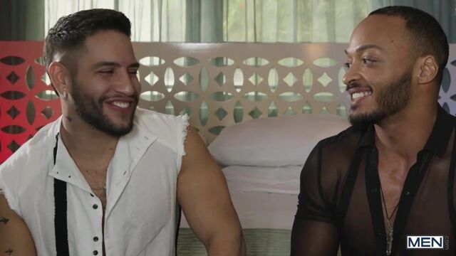 Take a trip to Puerto Rico with Latin hotties Brock Banks and Dillon Diaz. Brock and Dillon agree that their fellow Puerto Ricans are all about intensity, excitement, and drama, and love nothing better than getting their passions inflamed with some sexy dancing to get in the mood before progressing to other things... like passionate kissing on the bed. Dillon sucks top Brock's cock, then Brock licks and fingers Dillon's hole before giving him a deep dose of dick in piledriver! The studs 69 before Brock pounds Dillon's ass till the bottom cums, then finishes with a hot facial.