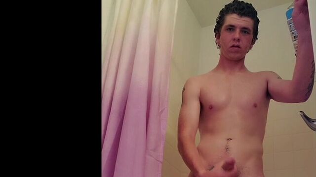- Description: This video has a nicely built guy with a pretty damn big uncut cock. Apparently he had sneaked off to the shower to do this jerk-off video, and his wife/gf interrupts when she realizes he is taking way too long of a shower!