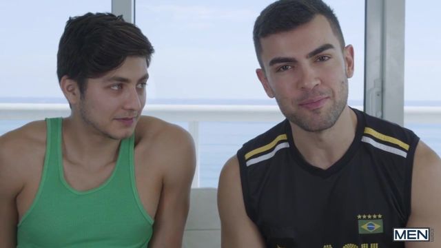 Although Brazilian hunk Alexander Muller's native tongue is Portuguese and Mexican-American hottie Angel Rivera is fluent in Spanish, when it comes to their lustful Latin passions they definitely speak the same language. Alexander describes just what he loves about Brazilian guys: not just their gorgeous looks and gym-honed physiques, but also the passionate nature that comes across in every touch, kiss, and caress. Alexander and Angel talk dirty in Spanish and Portuguese as they 69 before Alexander penetrates Angel's ass in doggystyle. Angel feeds Alexander his cock before hopping on for a ride, and Alexander fucks Angel in spoon till the bottom cums, then gives him a hot facial.