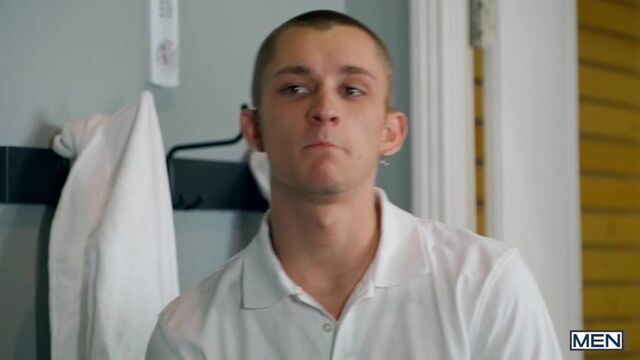 Theo Brady is an unruly top who knows how to rim, and since getting out of stir he needs a job... and some good dick. In his new gig as a towel boy at the spa, Theo gets to dick around to his heart's content while seeing all the dicks on display in the sauna... and he wants Lance Hart's. Theo presents Lance with a special towel and helpfully gives him his keys, then makes his move when he brings Lance a fresh towel in the steam room to fuck the silver fox doggystyle. Theo eats Lance's ass and sucks his cock, then takes a hot and steamy bareback fuck as Lance pounds him in mish and doggystyle before cumming on Theo's face and taking a facial in return.