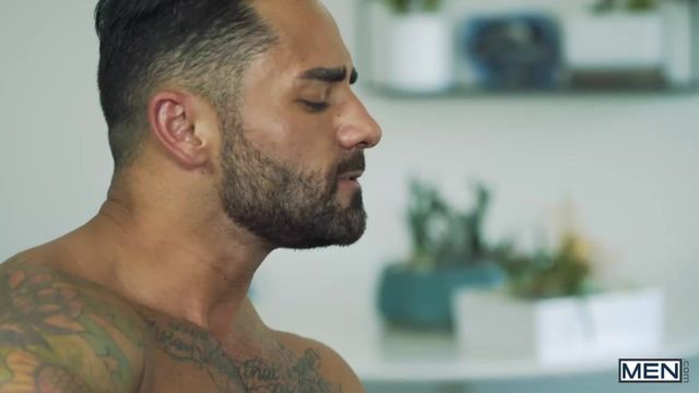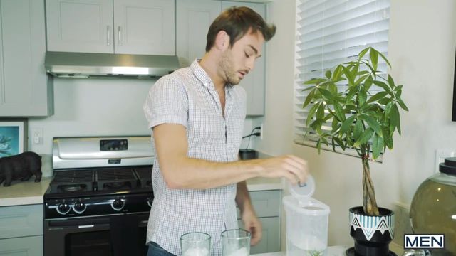 Bearded Bruno Bernal is looking for love online and he got the perfect match with blue-eyed Max Adonis, who has also been on the hunt. They hit it off right away and head back to Max’s place for a more intimate setting. Sun-kissed Bruno is so horny for the tall hunk that he strips while Max is preparing their drinks and surprises him with his hard, erect cock. Max takes much pleasure pounding his bubble butt doggystyle and jizzes all over his face.