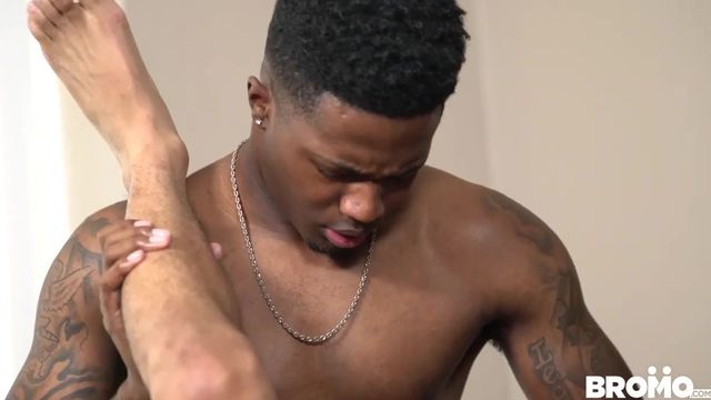 Two black gay guys fucking savagely on the bed - Bromo US