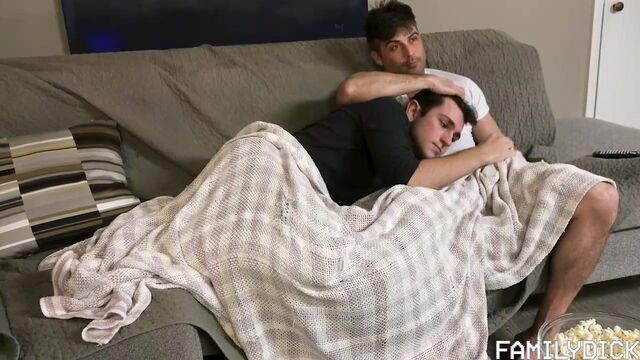 Brayden loves spending time with his hunky stepdad. He especially enjoys snuggling up on the couch and watching movies with him. Today, he can barely stay awake as he rests his head on his stepdaddy’s muscular body. As he begins to drift, the old man slowly caresses the boy’s butt and feels his cock growing in his pajamas. Brayden opens his eyes only to see his stepdaddy’s big dick throbbing in his underwear. He looks up at his pop for permission, and the old man smiles before poking his prick through the flap. The boy runs his lips over the head of his stepdaddy’s dick and gets on all fours to perk his ass out for a raw pounding. Then, his pop penetrates his virgin asshole slowly before breeding his bubble butt with a gooey load of DNA!