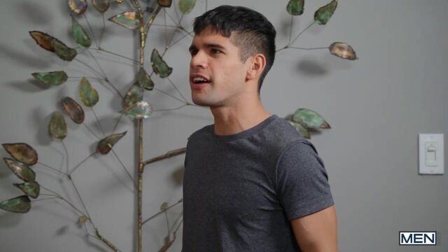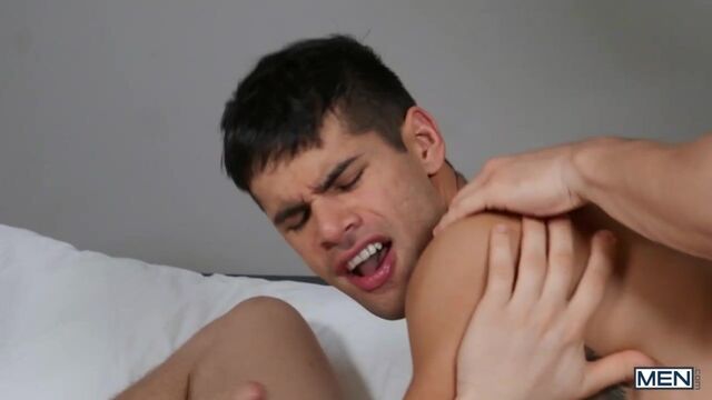 Paul Canon and Ty Mitchell can't help but feel a little bit responsible when they set up Nate Grimes with their flaky friend, and he gets stood up! They ask Nate to stay and watch a movie with them instead, and as the thrills and spooky chills unroll onscreen, the guys cuddle closer under the blanket. Nate starts caressing Paul's cock, then follows him into the bedroom and unveils his blockbuster big dick! Paul gets on his knees to swallow that meat, and when Ty comes in to see where his boyfriend got to, he helps Paul suck that cock. Paul fucks his petite man doggystyle as Ty goes down on Nate, then Ty rides Nate's massive cock as Paul sucks his dick. Then Ty and Paul 69 as Nate fuck's Ty's hole before pulling out and cumming on Ty's ass and Paul's face! Paul licks off the jizz before he jacks his dick till he cums, and Ty sits on Paul's face as he orgasms.