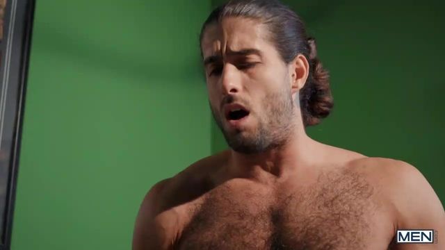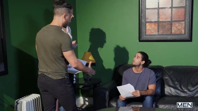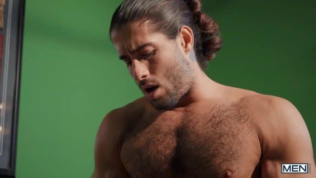 While running lines together in preparation for an upcoming audition, things get a little heated between actors Diego Sans and Xavier Cox. One thing led to another and dark-haired Diego’s pulling down his pants to reveal his big, uncut cock, and immediately, muscular Xavier is slobbering all over it. The two take turns blowing each other before Diego grabs Xavier’s perfectly round ass and buries his scruffy face deep into it. He then buries his huge cock into Xavier’s well-prepared hole and starts pounding away until he’s ready to bust and cums all over Xavier’s chest when who should walk in, the play director! It’s too bad he missed the hot show.