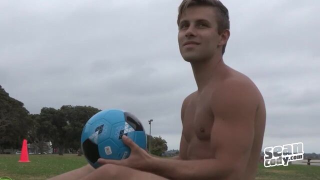 - Description: “Dylan, tell me a little about yourself.” The blond stud answered with his killer smile and friendly eyes. “I like to fuck after I get a good workout. I love sports, I love soccer...big balls and big butts!” Dylan is an athletic guy, and you can tell just by looking at him. He had no problem showing off his beautiful uncut dick while we were out in public…he’s definitely a keeper! “What turns you on?” We were curious about what else he likes. “Everything! But my favorite is…I’m an ass guy.” With a dick like that, he deserves a nice ass to play with. After playing around with the soccer ball, it was time to get down to it. He couldn’t wait to get inside to jerk off, so he just took his rock-hard cock and stroke it right then and there until he shot a thick load all over the camera!