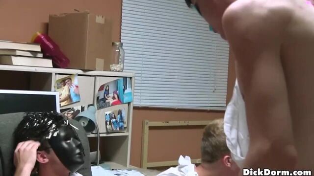 - Description: College is the time in life when you are suppose to broaden your mind and explore different avenues. The boys in this recent DickDorm submission have done just that. Only one of these dudes is actually gay but he has been crushing on his roomies since Freshman year and when he found out about DickDorm, he knew he could convince his broke ass roomies to go gay for money. These hot, teen college boys have thick, hard dicks and balls bursting with young, strong cum waiting to explode. The gay boy gets it all over himself and loves every ounce of the 3 loads he takes. Watch this latest DickDorm submission and fall in love with college, all over again, or, at least, with college boys.