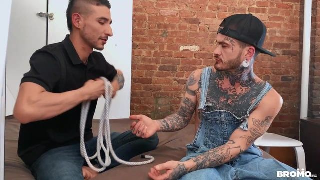 Tattooed stud Fly knows his buddy Dick used to be a boy scout, so when he needs help learning knots, he asks Dick to show him the ropes. Dick immediately demonstrates a few tricks, tying Fly's wrists and ankles together and challenging him to see if he can untie himself. With Fly right where Dick wants him in bondage, the horny top offers his big cock for a blowjob, fucking Fly's mouth before putting him on his knees and penetrating his ass in doggystyle. Dick has to untie Fly's ankles so he can fuck him in piledriver. Fly wants to give Dick a tip to thank him for all his help, but he gives him more than just the tip as he fucks Dick's hole in missionary and doggystyle! Then these rope sluts top off their knots with nuts.