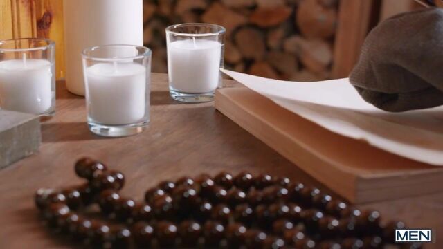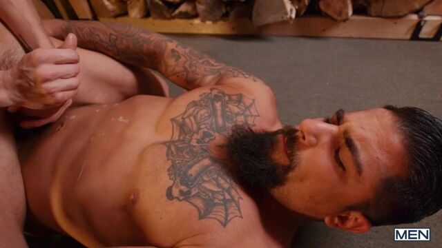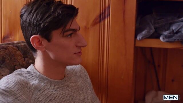 When car trouble brings Aiden Ward to a stop in the middle of a forest in winter, he enters a nearby cabin in search of shelter, unaware that he's being watched through the trees. Aiden finds himself playing a mysterious DVD that tells him where he belongs is on his knees, worshiping cocks. When Ryan Bones enters and tells Aiden to kneel, the mystified bottom does, and gives Ryan the hungriest blowjob of his life. The bearded, burly top fucks Aiden doggystyle against the wall, spanking his ass, then breeds his hole mish before Aiden rides Ryan's cock till he blows his load. There's only one thing for Ryan to do: cum on this newly converted cock worshiper's face!