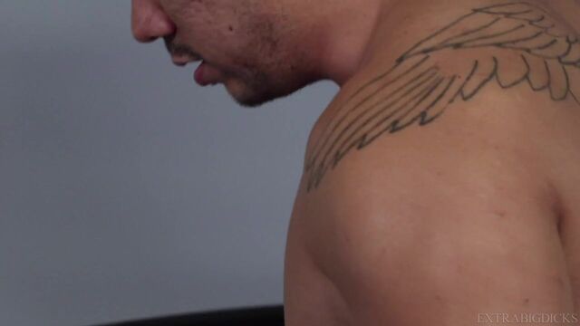 Muscular studs Aaron Trainer and Adrian Suarez meet in this clash of fucking titans. Who will result victorious Aaron's massive black cock or Adrian's Latino butt? A balls deep experience that you have to see to believe.