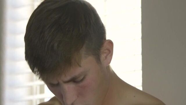Skinny young twink Holden blows a BIG load - Corbinfisher