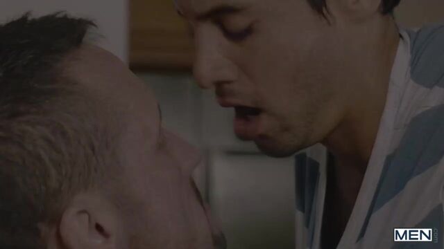 Titus and his boyfriend are back together and they’re celebrating the occasion with dinner! His bf’s dad, muscular Myles Landon, is invited as their special guest and young Titus engages in a special game of footsy or, in this case, “dicksy”. Stroking Myles’s dick with his feet and vice versa, Titus’s boyfriend catches them in the act and storms off. What else are the two horny men to do but fuck it out?