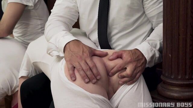 - Description: Misbehavior in the mission is not taken lightly by the priesthood leaders. When it is discovered that Elder Clarke and ElderJones somehow found the Living Sacrifice, and used his hole without permission, The Order is not happy about it.President Lewis and Bishop Doves escort the two blindfolded boys to a private chamber in the temple, where no one can hear them if they whimper or scream out. Humiliation and corporal punishment are often the best ways to ensure that the young missionaries fall in line, and President Lewis and Bishop Dove are no strangers to administering discipline to young men. They know just how to make the boys physically feel the weight of their transgressions.Blindfolded, stripped to his underwear, and terrified, Elder Jones is quick to thrust the blame on Elder Clarke, but their leaders know better than to believe that either boy was the sole culprit.They know for themselves how irresistible the Living Sacrifice’s body is. The first step to repentance for these disobedient boys will be the full submission of their bodies to the older men’s will. And there is an added twist to the boys’ punishment. The two men know the boys have feelings for one another, and that making them listen to each other being punished will be an added torture for the young men.President Lewis bends Elder Clarke over his knees, pulls down his sacred underwear, and spanks the blindfolded boy’s ass until it is red and sore. Elder Jones looks on in horror as his accomplice is punished, knowing that his own retribution is forthcoming.He feels every smack on Elder Clarke’s tiny butt, feeling a mix of sympathy for the boy and also arousal. Every time the hand hits the other boy’s ass, he remembers how good it feels to be balls-deep in the boy’s tight pink hole.Bishop Doves bends Elder Jones over his knee, opens the flap on the back of his garments, and administers a spanking to him while his buddy gets spanked inches from his face. The whimpers the two boys make turn the older men on, and as their cocks stiffen in their black slacks, they decide to add some penetration to the punishment.President Lewis retrieves a clear crystal rod to penetrate Elder Clarke’s tight asshole, shoving it deeper and deeper as the boy moans in a mixture of intense pleasure and pain. Elder Jones is filled with anxiety, but he cannot help feel his cock twitch as he watches his accomplice’s hole sodomized with the glass instrument. He even starts to look forward to his own punishment.Jones shudders as Bishop Doves prepares to penetrate his asshole with the crystal rod. But much to his surprise, the cold, hard rod feels good in his quivering asshole. It even makes his cock get hard, and as he lies across the Bishop’s muscular leg, he begins to realize that his own lustful heart is filled with dark desires that have yet to be explored.The punishment is very confusing for both boys. What does it mean that to some degree they enjoy this humiliating carnal punishment? What does it mean that they lust for the feeling of their assholes expanding as the crystal rod plunges deeper into his gut?These questions only become urgent as Jones watches in horny amazement while President Lewis shoves his rock hard cock down Elder Clarke’s throat, and the man gets ready to deliver his seed to the pretty missionary gagging on his tool.