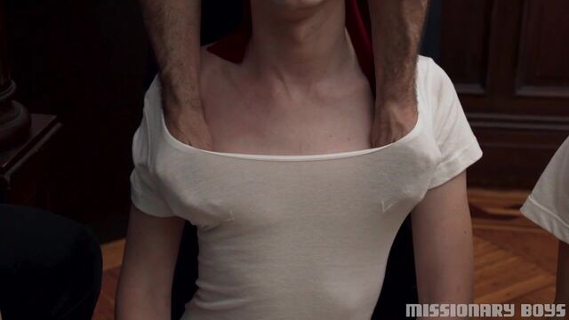 Misbehavior in the mission is not taken lightly by the priesthood leaders. When it is discovered that Elder Clarke and ElderJones somehow found the Living Sacrifice, and used his hole without permission, The Order is not happy about it.President Lewis and Bishop Doves escort the two blindfolded boys to a private chamber in the temple, where no one can hear them if they whimper or scream out. Humiliation and corporal punishment are often the best ways to ensure that the young missionaries fall in line, and President Lewis and Bishop Dove are no strangers to administering discipline to young men. They know just how to make the boys physically feel the weight of their transgressions.Blindfolded, stripped to his underwear, and terrified, Elder Jones is quick to thrust the blame on Elder Clarke, but their leaders know better than to believe that either boy was the sole culprit.They know for themselves how irresistible the Living Sacrifice’s body is. The first step to repentance for these disobedient boys will be the full submission of their bodies to the older men’s will. And there is an added twist to the boys’ punishment. The two men know the boys have feelings for one another, and that making them listen to each other being punished will be an added torture for the young men.President Lewis bends Elder Clarke over his knees, pulls down his sacred underwear, and spanks the blindfolded boy’s ass until it is red and sore. Elder Jones looks on in horror as his accomplice is punished, knowing that his own retribution is forthcoming.He feels every smack on Elder Clarke’s tiny butt, feeling a mix of sympathy for the boy and also arousal. Every time the hand hits the other boy’s ass, he remembers how good it feels to be balls-deep in the boy’s tight pink hole.Bishop Doves bends Elder Jones over his knee, opens the flap on the back of his garments, and administers a spanking to him while his buddy gets spanked inches from his face. The whimpers the two boys make turn the older men on, and as their cocks stiffen in their black slacks, they decide to add some penetration to the punishment.President Lewis retrieves a clear crystal rod to penetrate Elder Clarke’s tight asshole, shoving it deeper and deeper as the boy moans in a mixture of intense pleasure and pain. Elder Jones is filled with anxiety, but he cannot help feel his cock twitch as he watches his accomplice’s hole sodomized with the glass instrument. He even starts to look forward to his own punishment.Jones shudders as Bishop Doves prepares to penetrate his asshole with the crystal rod. But much to his surprise, the cold, hard rod feels good in his quivering asshole. It even makes his cock get hard, and as he lies across the Bishop’s muscular leg, he begins to realize that his own lustful heart is filled with dark desires that have yet to be explored.The punishment is very confusing for both boys. What does it mean that to some degree they enjoy this humiliating carnal punishment? What does it mean that they lust for the feeling of their assholes expanding as the crystal rod plunges deeper into his gut?These questions only become urgent as Jones watches in horny amazement while President Lewis shoves his rock hard cock down Elder Clarke’s throat, and the man gets ready to deliver his seed to the pretty missionary gagging on his tool.