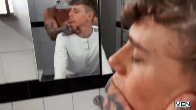 Dominant top Zilv is poised to set a record in the shampoo bottle challenge when playful twink Rourke runs up behind him and yanks down his boxer-briefs, sending the bottle delicately balanced on his huge bulge crashing to the floor. Zilv puts the cute brat up against the wall, vowing to teach him a lesson! That's just what Rourke wanted, because he hungrily swallows Zilv's hard cock, then bends over the sink and pushes his ass out, teasing the dom with the sight as Zilv fingers his hole before fucking him doggystyle. In the bedroom, Zilv eats the bottom's ass and pounds him on the bed, then Rourke worships the top's cock, balls, and asshole before the horny pair cums together.
