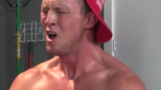 Michael Roman and Pierce Paris are right-wing Americans in this dvd. They run into Bruno Bernal who doesn't quite fit into Michael and Pierce's idea of what an American should look and act like. After chanting 'build the wall' to Bruno's protests, the two country boys take him to a back room and throw him to the ground as they unzip their pants and whip out their big thick cocks. Bruno loves the idea of getting the two hicks' dicks down his throat and he opens his mouth for Michael and Pierce to stuff his face. Bruno complies with every one of the demands from Pierce and Michael and even sucks on their hairy, sweaty assholes to make the guys think they're dominating everything he does. Bruno is having the last word by getting his face used like a hole for the two hot studs to double fuck his mouth at the same time. It's a tight squeeze fitting all that meat in his face at once, but Bruno manages to get the job done. The rednecks want to take their fun to the next level and shove Bruno into a utility closet. Michael needs Bruno's tight hole wrapped around his massive cock and he bends him over a table to stuff his asshole balls deep while Pierce takes control of the front to complete the spit roast. With all of Michael's raves about Bruno's tight ass, it's time for Pierce to get a feel and he slips his massive rod deep inside Bruno's well-worked butt. With all the big cock and ass fucking action, Michael wants to see what all the fuss is about and offers up his own ass for Pierce to destroy. Bruno sits on his face face while Pierce works his buddy from behind. Michael moans out for Pierce to fuck him harder and Pierce takes the challenge. He pounds as hard as he can until his big stick finally puts Michael over the edge and he blows a massive load all over his own hairy abs. Once Pierce sees that he's done the job of getting his buddy off, he pulls out and dumps his own load all over to mix with Michael's pure white jizz. Bruno finishes off in Michael's mouth then grabs their clothes, flips them off, calls them 'fucking assholes' and leaves the two rednecks alone and naked to 'make America great again' on their own in the closet.