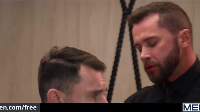 Tyler Berg has studied hard under master Jessy Ares, and now he's being given a chance to show off just how much he's learned on the lean and hairy James Castle. Tyler takes control of James, giving him a slow and sensual working over with his hands and tongue while Jessy watches. Tyler takes James' feet over his shoulders and fucks him fast and hard as James begs him to keep giving it to him. After a good deep pounding, Tyler takes his turn riding James' long thick cock, both studs doing whatever it takes to impress master Jessy.