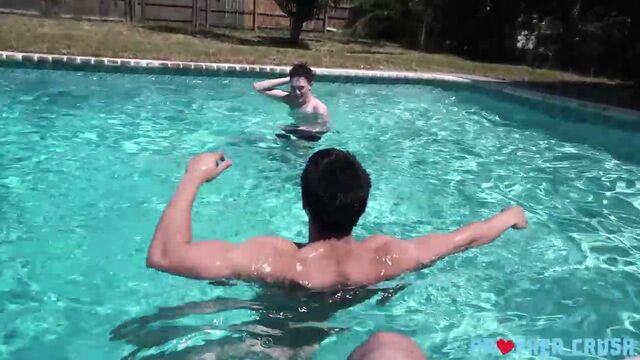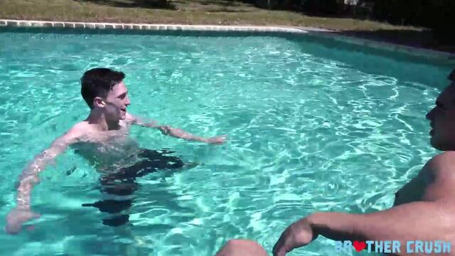 - Description: The sun is out and the water is perfect, so these three mischievous teens hit the pool to have some fun and check out each other’s fit bodies. But when the youngest stepbrother jumps into the water, he finds himself trying to hide a raging boner from his older buddies. Luckily, his big bros understand and want to help him get rid of his hard-on. His stepbrother’s beefy friend lays out on a lounge chair and lets the little twink play with his ass while their other stepbrother films. Soon, the horny little guy is sucking both hard cocks and gagging as they fuck his hungry mouth. Finally, he swallows a thick load of their creamy cum and couldn’t be happier. Talk about a fun day at the pool!
