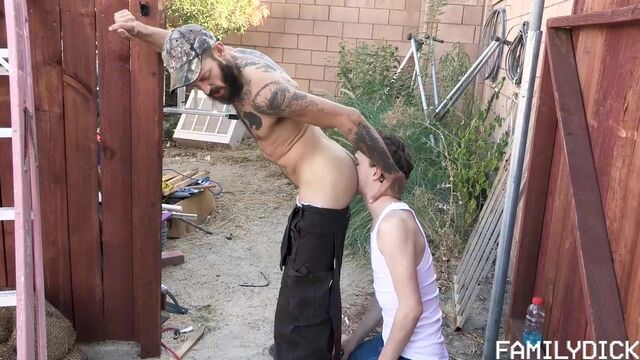 - Description: Boys often imitate their stepfather figures, so when little Toby Muck gets the chance to smoke some of his old man’s cigarettes, he steals his pop’s pack and sneaks out back to take a few puffs. But when his tatted stepdaddy catches the boy in the act, he makes him lick his dirty ass instead of smoking the entire pack. He spreads his cheeks for the boy to run his tongue around his pulsing hole, before the stepdad turns around and shoves his thick cock in his redheaded teen’s mouth. He loves the way the boy’s pretty little lips feel on his dick so much that he forces his cock deep inside the kid’s young hole, filling him up with his stepdaddy cum. That’ll teach him to make healthier choices!