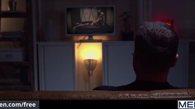 Barrel-chested Jessy Ares is putting on a show, dominating the eager-to-please and athletic James Castle. Tyler Berg watches from the comfort of his home, stroking his cock while the dark-haired muscle daddy orders James to beg for his dick, then gives hi