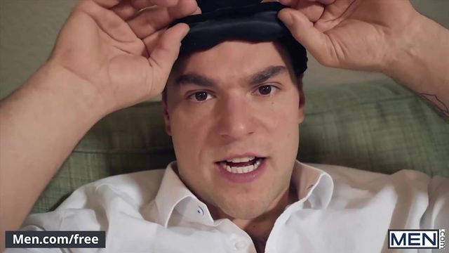 Aspen won't let his girlfriend take his credit card to go shopping. She offers him a blindfolded blowjob and takes his card when he's not looking, leaving the tattooed hunk with his pants down and his dick out, waiting for a blowjob that might never come. Luckily, when the tall, athletic Jackson Traynor comes across his straight roommate blindfolded and begging for a blowjob, he doesn't hesitate to give Aspen what he's waiting for. When Aspen realizes those aren't his girlfriend's lips around his thick dick, he's surprised but sure enough it's not long before his legs are in the air and Jackson's huge cock is all the way inside him. The two muscular hotties flip-flop fuck until they've both shot their loads all over Jackson's chest.