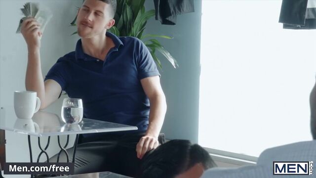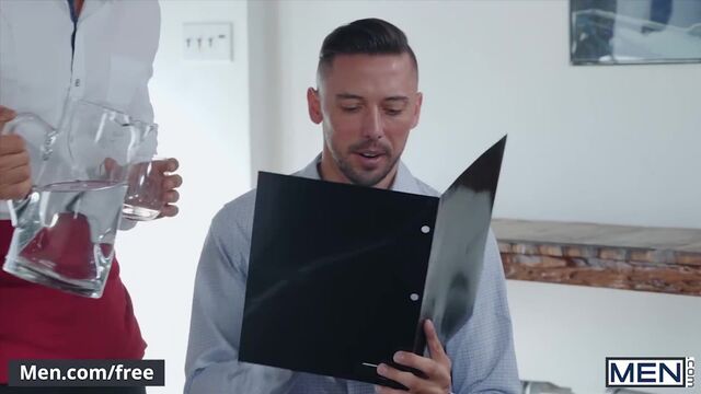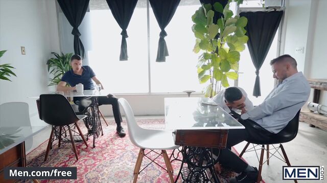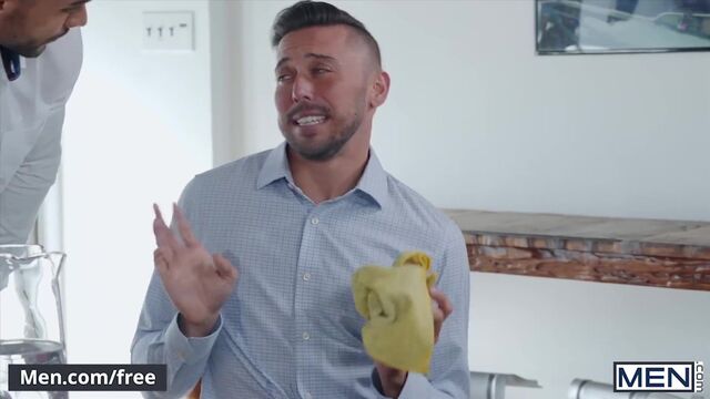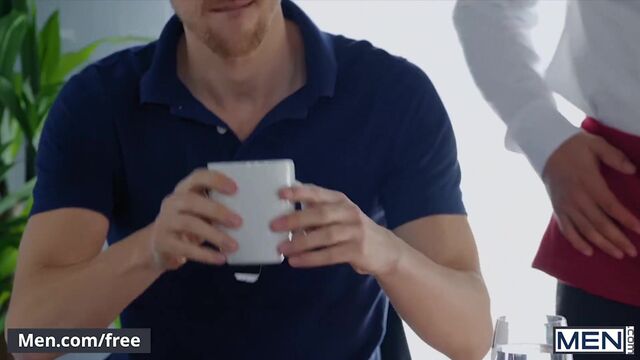 Handsome, athletic top Arad Winwin is just trying to get through his serving shift at a restaurant, but horny bottoms Shane Jackson and Parker Rowan keep pulling him into their petty games. The tall, slim Parker and the bearded, handsome Shane fight over