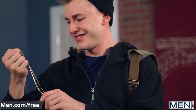 Slender cutie Zander Lane thought he could break into buff hottie Damien Stone’s house, and actually get away with it! Although, he probably could have if he didn’t stop to stuff his hole with a butt plug he found in a box of toys. Dark-haired Damien got