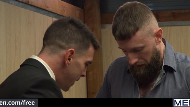 Muscular Troy Daniels was getting ready to leave the office in chiseled Paddy O’Brian’s clothing when he’s intercepted midway through getting dressed by the big dick stud himself. Paddy sends his assistant away, and demands tattooed Troy get undressed so he can teach him a lesson about borrowing other people’s things. Horny Paddy bends the tall hunk over to rim his hole, and pound it in doggy style.