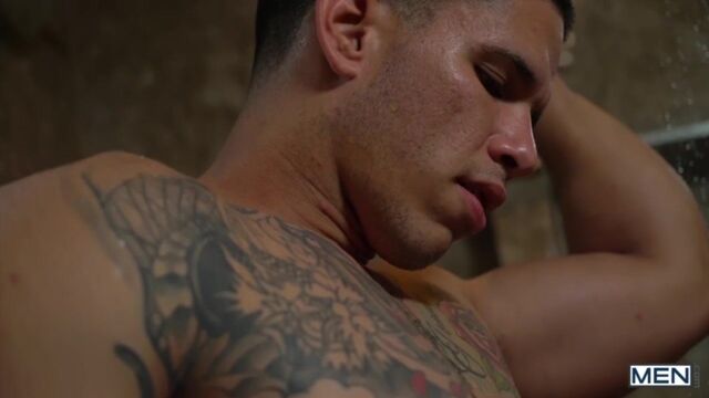 Tattooed stud Jacob Miami is taking a shower when prankster Justin Matthews sneaks in and throws a bowl of ice cold water on him. He notes how nice and wet his dick is and offers to warm it up with his eager mouth. Now that Jacob’s cock is hard, he turns muscular, blonde-haired Justin around for some doggy style ass pounding before letting him get on top to ride his cock until he busts a nut.