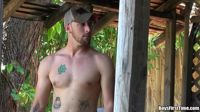 Horny Dustin Steele and Jake Evans fucking outdoors - Boys First Time