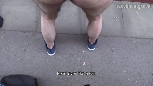Scrawny twink with a hairy ass fucks while in public - Czech Hunter