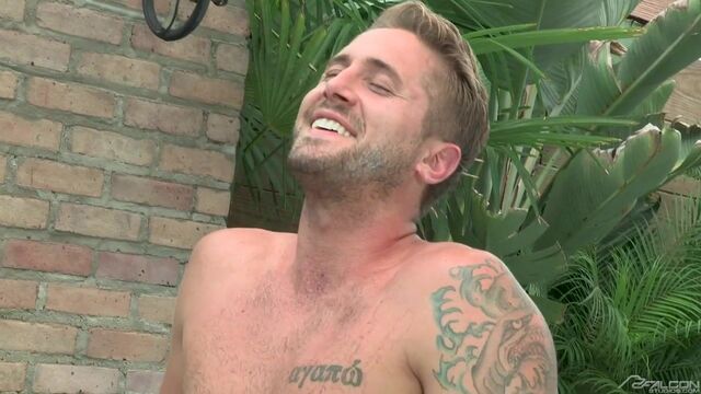 It's another hot day in the South and the weather isn't the only thing steaming up the place. Wesley Woods and Kurtis Wolf are cooling off in the pool and making out when Wesley senses that Kurtis is hungry for some dick. Wesley stands up and lets the stud have what he wants when he opens his mouth wide and accepts Wesley in his mouth. Kurtis works his magic and gets Wesley hard as a rock before he decides he wants Wesley's tongue deep inside of him. Kurtis bends over and offers up his tight hairy ass for Wesley to do with as he pleases. Wesley gets to work licking every bit of the stud's welcoming ass as Kurtis' eyes roll to the back of his head. Wesley is hungry for dick and flips Kurtis over to suck the hairy jock. Wesley's mouth feels amazing to Kurtis and he blows all over Wesley's beard and in his mouth. Kurtis is ready to taste what Wesley has to offer and gets back down between his legs. After working Wesley's dick one final time, the stud blasts his cream all over Kurtis' well-worked tongue.