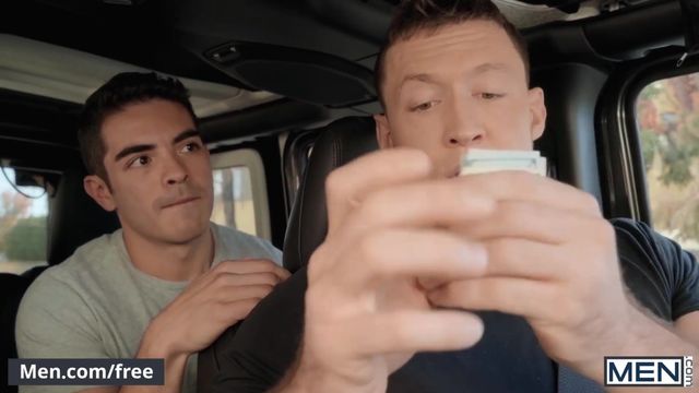 Tall, athletic Pierce Paris is working for a car service, and his client dark-haired Cazden Hunter won’t stop commenting on how good he looks. Normally the shy hunk doesn’t mind, but he’s not used to men coming on to him, and asks the chiseled cutie to quit it. Cazden just can’t help his curiosity, and offers him a generous tip if he’ll show him how big his dick is. Pierce can do with the extra coins so he pulls out his massive, thick cock, and collects his cash. Horny Cazden doesn’t stop there as he offers him an even bigger tip to come upstairs, and turn him into his bottom bitch.