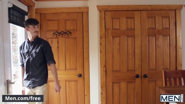 Horny and hung Theo Ross finally has some time to jerk off, and relieve some tension. His slender, tall roommate Jay James thought he heard screaming so he bursts into the room, and interrupts tattooed Theo halfway through stroking his thick cock to climax. Cute Jay can’t seem to think of anything else, and borrows Theo’s dildo so he can play with his tight ass. Good-looking Theo hears screaming, and this time he’s the one who bursts into Jay’s room. Jay invites Theo over to show him how to play with his toy, and to let him feel the real thing too!