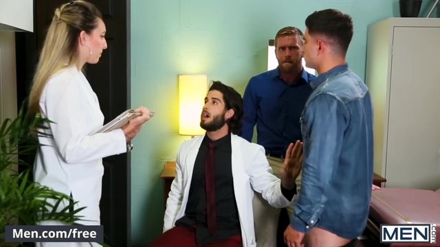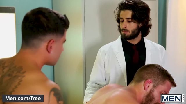 Handsome doctor Diego Sans has a new surgery request from his new hunky patient Vadim Black, and his blue-eyed boyfriend Scott Riley. Athletic Scott can’t handle muscular Vadim’s huge cock in his tight ass, and wants him to get it reduced. Fit Diego asks them to show him exactly how they fuck right there in the office which inevitably gets the doctor so horny that he ends up joining the demonstration so he can make a more thorough analysis.