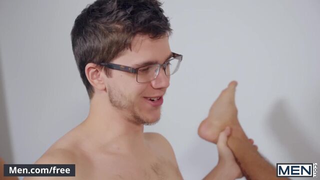 Fit, boyish Jason Wolf is nervous about popping his cherry for the first time. Athletic cutie Will Braun offered to help him out by loosening his tight hole up with a dildo, but Jason couldn’t fathom such a big dick, real or fake, going inside of him. Will has Jason put on an eye mask as he undresses, and slowly slides his hard cock down his anal passage. Jason is actually enjoying it, and let’s Will know he’s doing a good job. Will removes the eye mask and Jason is stunned, but pleasantly surprised that Will is just the right size!
