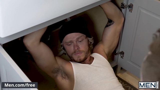Tall, lean Pierce Paris has a leaky sink to fix and who better to get the job done than sexy, chiseled Blake Ryder. Athletic Pierce accidentally gets the blond-haired hunk wet when he turns on the water so he offers to dry his shirt, but not before making out and getting his big, thick dick sucked! Tattooed Blake still has a while to go before his shirt is dry so he makes use of the time and fucks Pierce’s tight hole until they both cum.