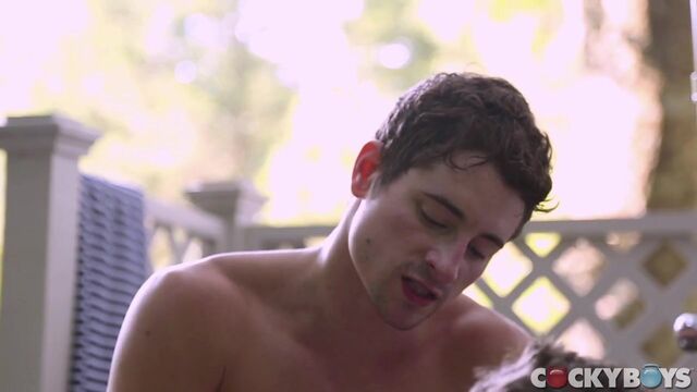 Felix Maze gets to enjoy something new with outdoor sex and he has Taylor Reign to make his fantasy come true! After being around Taylor for a few days, Felix finally finds him alone and watches him playing with his hard cock right after a sexy outdoor shower. He goes down on Taylor insatiably and soon eagerly accepts Taylor's invitation to fuck him, no longer caring if they're caught.Although Felix is totally turned on and ready to go Taylor likes some more foreplay: making out with Felix and working his way down to sucking him. As he deep sucks him, Taylor also reaches around to finger his tight ass before turning him around to eat out his ass as he hold on to the outdoor shower stall. Finally Taylor slides his raw cock into a loudly moaning Felix and stretches him out to thrust harder.Without a moment's hesitation Taylor bends Felix over the chair he was sitting and bears down on his ass. Taylor hardly has to go in halfway to make Felix moan louder and when he shouts out that pushes Taylor over the edge. He pulls out and jizzes over his crack bu wastes no time tellng Felix to sit and cum for him. As Felix strokes himself Taylor slips in a finger and pushes the button to makes him shoot. Taylor tastes some sweet leftovers and they share a cummy kiss. Now they BOTH need a shower! Enjoy, Jake Jaxson