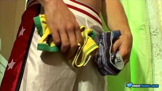 Favorite UndieTwink model Kelly Cooper! Watch him work through a pile of undies, trying them on until he finds the perfect pair to jack off his huge uncut cock into!