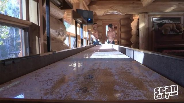 Claiming that they had unfinished business to deal with, Tanner and Rowan let the other three guys head out so they could stay back and get into some trouble. They played some strip shuffleboard which got the two pretty naked, pretty quick, then Rowan brought Tanner out back to teach him how to chop some fire wood for the house for later. After some friendly banter the two ended up in the kitchen and basically fucked all day. Tanner fucked Rowan and spun him around a few times taking turns plowing his ass and mouth. By the time the two were done fooling around, the other three stopped in and interrupted their good times. This didn’t stop Tanner who shot his load in front of everyone. All in all, another good day in the mountains.